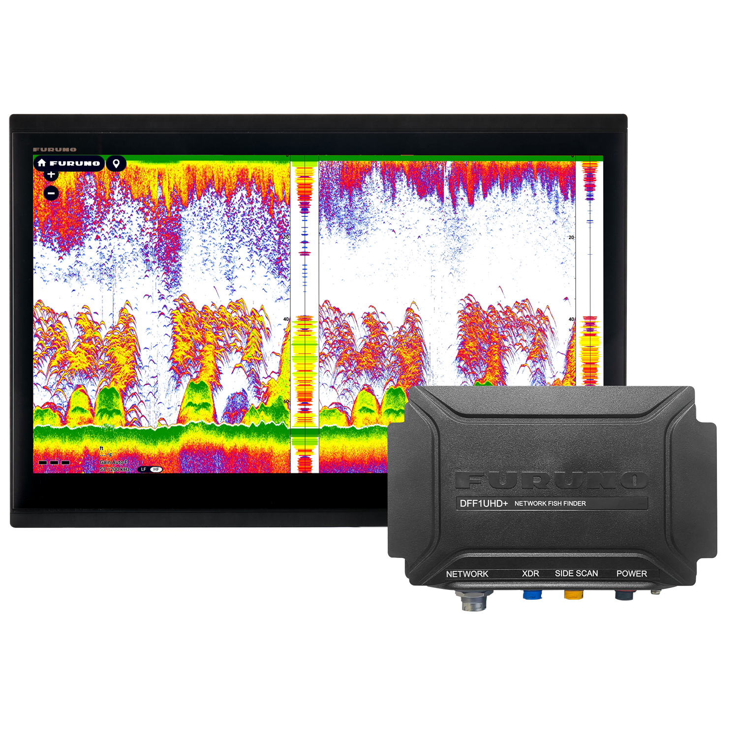 The DFF1UHD+ is a powerful multi-channel network Fish Finder designed for seamless integration with NavNet TZtouchXL, the perfect addition for helms featuring the TZT22X, TZT24X, or Black Box TZTBBX. The DFF1UHD+ combines up to 1 kW of CW and CHIRP Fish Finder power with 230 kHz or 455 kHz CHIRP Side-Scan in a single compact unit, delivering enhanced performance and versatility. Color-coded, waterproof connectors and a compact design allow for a simple installation.