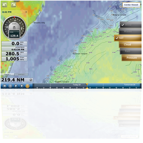 View premium weather content, such as current weather reports, NOWRad® nationwide high resolution weather radar imagery and high-resolution Sea Surface Temperature images that can help fishermen locate hot spots.
