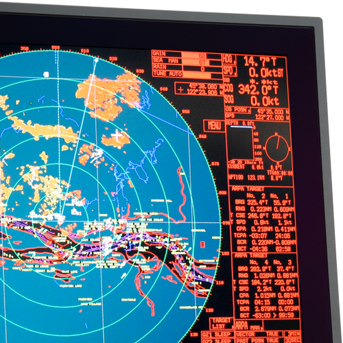 The MU190 display unit employs a 19" Color DVI-D LCD, providing an effective picture diameter of larger than 250 mm. The SXGA monitor provides crisp radar echoes, which are presented in a selected color with a day or night background color for easy observation all lighting conditions. Different colors are assigned for marks, symbols and texts for user-friendly operations.