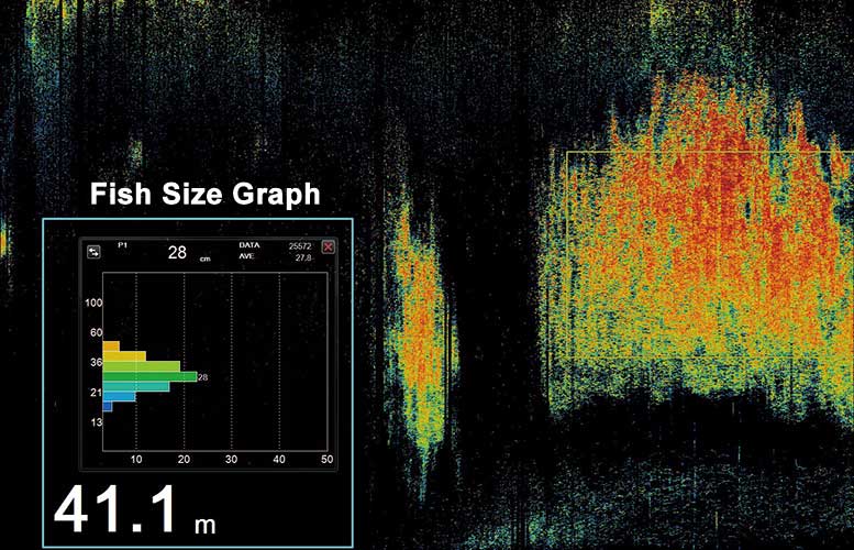 You can measure and display fish sizes in three locations at the same time. This allows you to compare and analyze fish size and school composition, which makes for more efficient fishing, such as aiming for fish of a particular size.