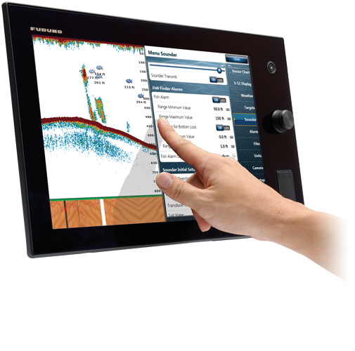 Furuno elevates marine touch screen technology to an entirely new level with the industry's first multi touch MFD. The use of multi touch technology opens the door to a wide variety of gesture-based commands. NavNet TZtouch's waterproof display is also ruggedized to perform perfectly in wet, harsh conditions.