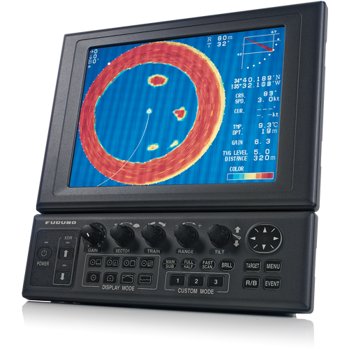 There are eight operational modes to choose from. Full circle scan helps to detect fish schools at any bearing, all around the vessel. Vertical slice mode gives you a fore and aft, surface to surface, expanded view of fish school distribution on the selected bearing. The combination full circle/vertical slice mode finds fish targets and bottom structure all around the vessel, with a vertical slice display at the same time. You can set it for a depth sounder mode, which has a tilt and train capability for forward or side looking. It is even stabilized against the boats motion. Full Circle with Video Plotter displays your ship's track with respect to the sonar sounding area - an unrivaled feature for purse seining. A unique Cross-Section mode let's you instantly view the vertical plane in a specified direction, useful for evaluating the concentration and location of fish schools, or as an aid to navigation.