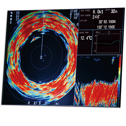 The CSH5LMK2 is a full-circle scanning sonar that can rapidly detect schools, individual fish and changing underwater conditions around a vessel. Fish distribution and seabed conditions are displayed in 16 colors, 360 degrees around your vessel. The CSH5LMK2 is considered a mid-frequency sonar at 55 KHz. Its wider beam width coupled with its enhanced target identification capabilities make it ideal for searching deeper waters. Fish and bottom echoes are clearly separated and bait fish are more easily tracked. With automatic tilt scanning as a standard feature, the CSH5LMK2 is suitable for both midwater trawlers and purse seiners.