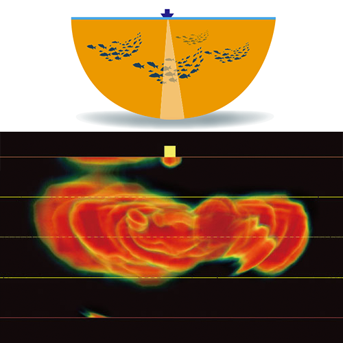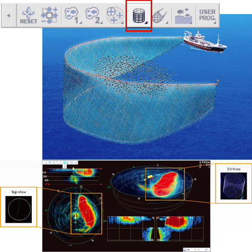 Because the movement of fish schools can be viewed instantly, 3D Sonar Visualizer™ allows fishermen to prevent by-catch and anticipate fish escape behaviors