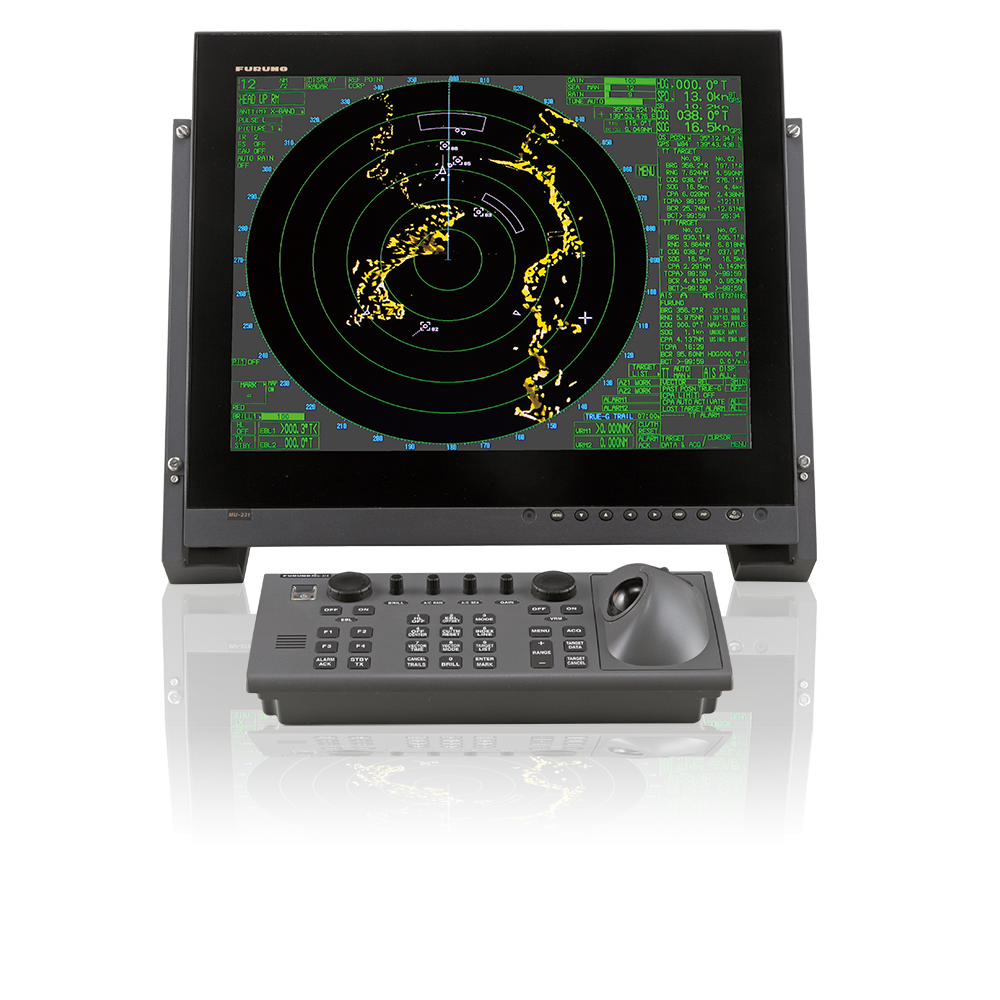 The display unit employs a 23.1" LCD. It provides an effective picture diameter of larger than 340 mm. The SXGA monitor provides crisp Radar echoes, which are presented in a selected color with a day or night background color for easy observation in all lighting conditions. Different colors are assigned for marks, symbols and texts for user-friendly operations.