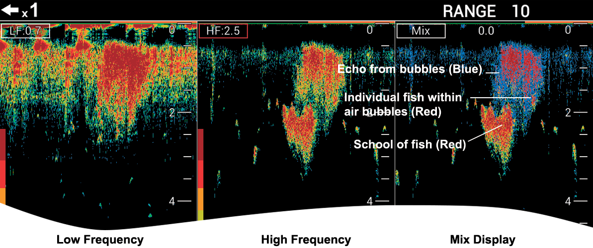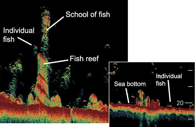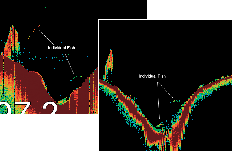 Individual fish can be discriminated within schools of fish, for easy identification of size and species. Additionally, you can easily spot individual fish close to the sea bottom.