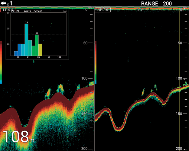 Enjoy efficient and sustainable fishing with the FCV1900G's unique fish size graph functionality that utilizes TruEcho CHIRP™ technology for precise estimations of fish size and size distribution within schools of fish. You can accurately analyze schools of fish all the way from shallow to deep waters.