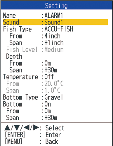 Whether you are a seasoned fisherman or just learning how to use your Fish Finder, the Fish Alarm function is ready to become your best friend. You can preset an area on the Fish Finder that you want to watch and as soon as a fish echo appears in that area, a loud alarm will sound, as well as displaying an alarm icon on the screen. You can also set the alarm to be triggered by specific conditions for water depth, target depth, water temperature, bottom type and more. With the Fish Alarm function, you will fish smarter, not harder. You never have to miss a target again!