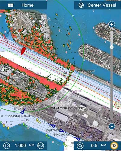 You can also overlay your Radar targets onto the chart to make it even easier to understand what you are looking at around your boat. Simply add a heading sensor and you will be able to easily line up and overlay the Radar targets, and they will automatically scale up or down as you zoom in and out of your chart.