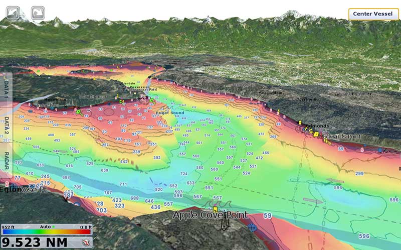 When it comes to information overlay, look no further than Furuno’s NavNet MFDs. The TimeZero engine that drives these systems allows for an unprecedented level of customization when it comes to expanding the display presentation. Of course, Depth Shading and Satellite Photo Overlay are standard fare these days. TimeZero, though, presents this information in an entirely new way that we call Satellite Photo Fusion. Satellite Photo Fusion allows you to overlay the Satellite photography onto your chart, but the photo will only shows in areas where there is a charted depth of zero - that is, land masses. From there, the photo becomes less opaque as the water depth increases, allowing you to see the chart information where you need it without being obscured by the photo image. The result is the smooth, attractive transition from sat photo to chart.