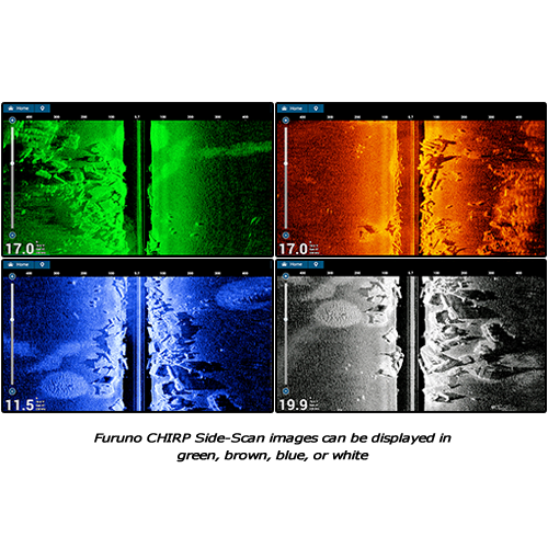 Furuno CHIRP Side-Scan provides benefits for inshore or coastal fishing that cannot be duplicated with a traditional Fish Finder, allowing you to see the presence of fish targets near piers and bridges before casting a lure or jig. With the ability to see structure and fish targets at unprecedented distances up to 750 feet, you will have the ability to scout fishing locations without scaring fish away due to engine noise or boat shadow in shallow water. You will also be able to find and fish uncharted bottom structure while mitigating the risk of grounding caused by unintentionally drifting into shallow areas.