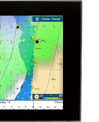 The weather tool is completely free and easy to use, giving you unlimited access to weather forecasts worldwide 24 hours a day provided by NavCenter. Select geographic coverage, data type, period of time, and then choose how to receive the file. NavNet TZtouch2 provides up to 16 days of weather forecasting.