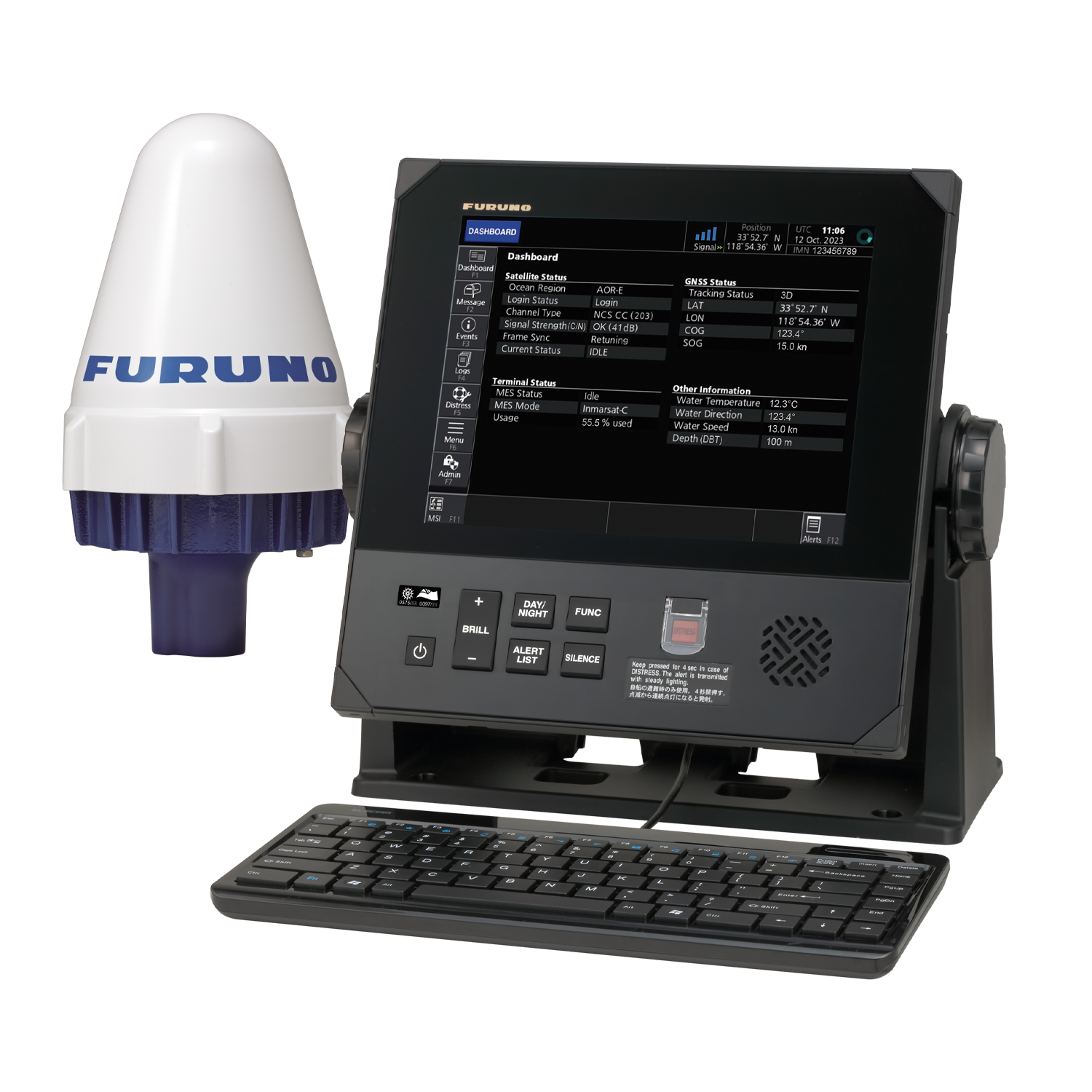 Inmarsat-C Ship Earth Station terminal for GMDSS applications. Full GMDSS compliance with optional printer and AC/DC power supply.